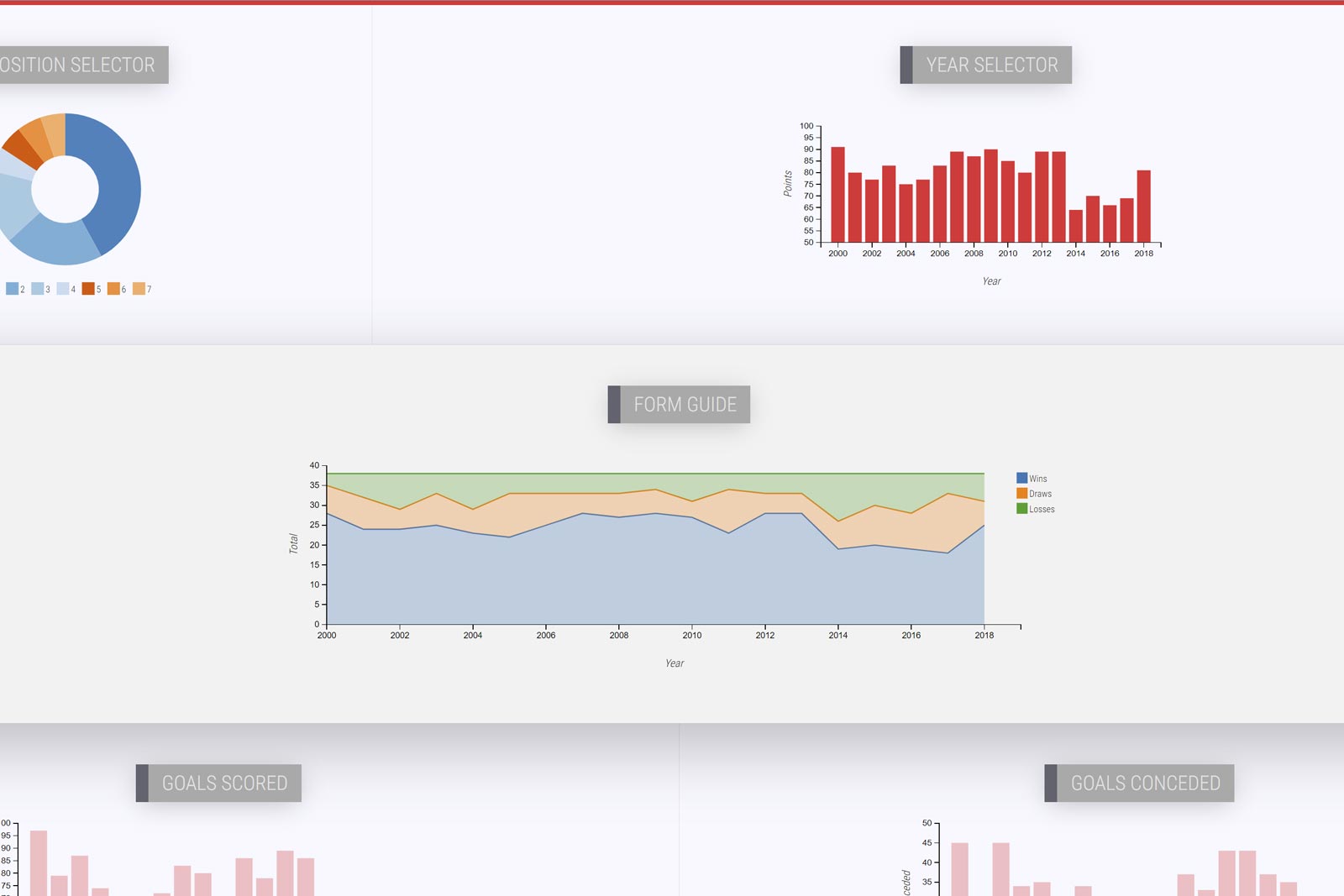 This dashboard enables you to dive into the stats of your favourite Premier League teams and compare them with other title contenders over the years. You can now visualise the journey of your favourite teams in this data rich dashboard analysing their end of season results and comparing them with the remaining title rivals.
